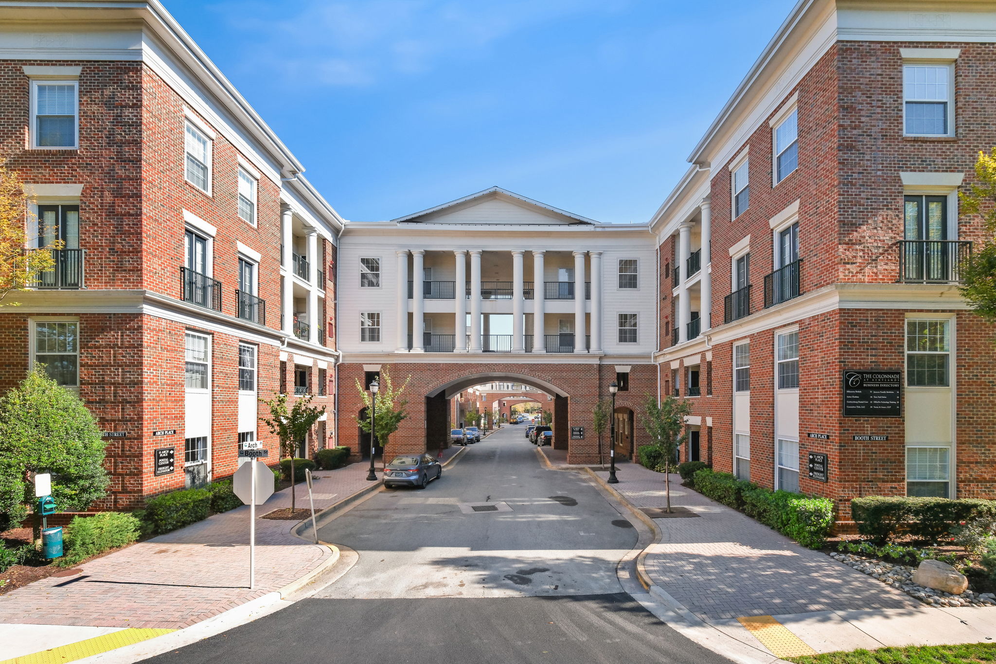Welcome to this stunning, move-in ready home in the highly sought-after Kentlands Colonnade — where upscale living meets everyday convenience. This spacious 3 bedroom, 2 bath condominium is one of the largest floor plans in the community and checks every box for the discerning buyer. From the moment you walk in, you'll notice the soaring ceilings, wide-plank hardwood floors, graceful archways and quality finishes that set this home apart. The open great room centers around a cozy gas fireplace and flows naturally into the dining area — an ideal setup for both quiet evenings and entertaining guests. The well-appointed kitchen features granite countertops, stainless steel appliances, upgraded fixtures, a walk-in pantry, and a classic tiled backsplash that ties it all together. The primary suite is a true retreat — with private balcony access, a generous walk-in closet, and a beautifully updated spa bath complete with an oversized tiled shower, dual sinks, and modern finishes. The additional bedrooms are spacious and bright, sharing a well-appointed full bath. A dedicated laundry area with full-size machines rounds out the practical side of this home. Step outside onto the expansive balcony — accessible from multiple rooms — and enjoy your own private outdoor escape. Recent updates include a new HVAC system and hot water heater, giving you peace of mind from day one. Life at the Kentlands Colonnade means access to an impressive list of amenities including a resort-style pool, two-story fitness center, wine and game rooms, a library, and elegant entertaining spaces. A true sense of community is built into the building's culture, with regularly hosted events including themed dinners, summer gatherings, and neighborhood festivals. This home also conveys with three assigned garage parking spaces plus an additional outdoor space just across the street — a rare and valuable bonus. Perfectly positioned at the edge of Downtown Kentlands, you're steps from exceptional dining, boutique shopping, a luxury cinema, Whole Foods, seasonal farmers markets, and beloved community events like Oktoberfest. This is truly the best of low-maintenance, high-quality living in one of Montgomery County's most vibrant and desirable neighborhoods.